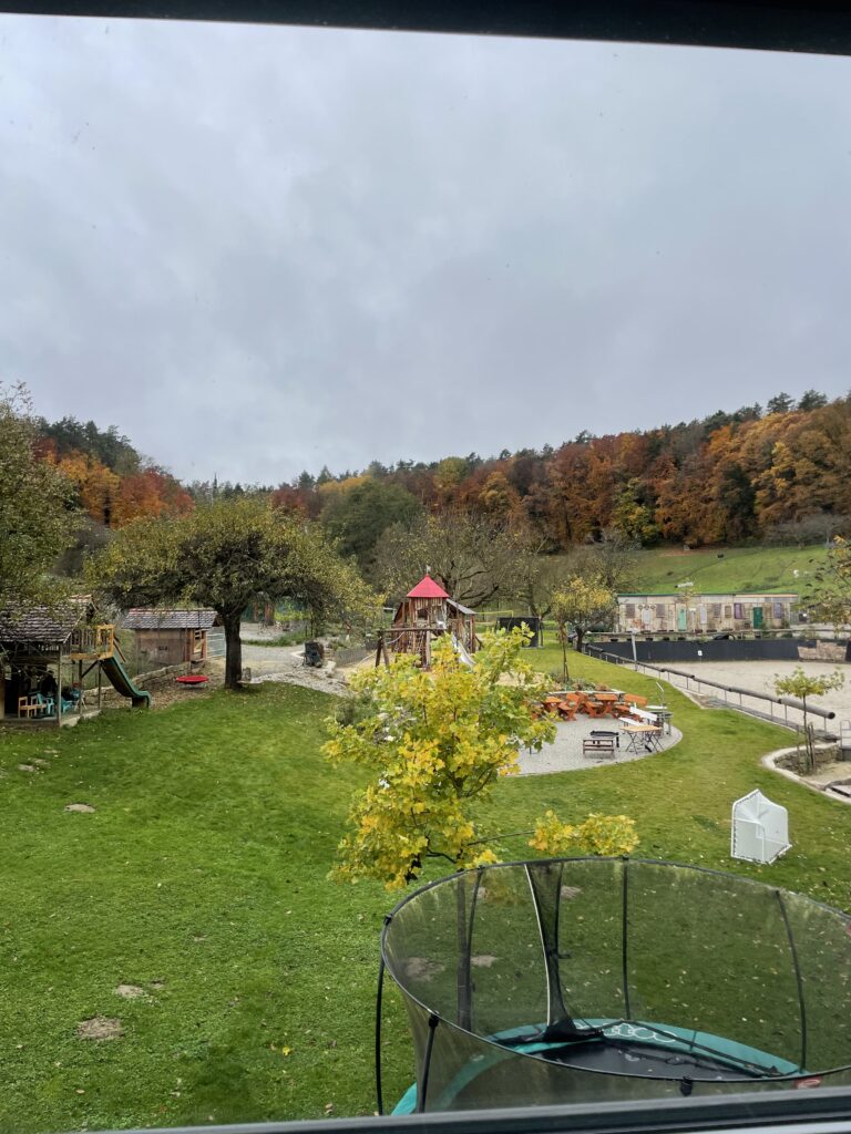 Es ist ein Traum für Kinder: ein großer, neuer Spielplatz, der zum Klettern, Sandeln, Rutschen und Schaukeln einlädt, liegt umzingelt von Hühner-, Schaf- und Ziegengehegen. Der Reitplatz direkt daneben – ein Traum für jedes Pferdeliebhaberherz. Kühe schauen vom Hügel oberhalb des Reitplatzes herab, und ein toller Wasserspielplatz rundet das Ganze ab. Wer jetzt denkt, dass dies schon alles war, irrt, denn auch zwei Trampoline und ein Spielhaus stehen bereit. Kinderherzen schlagen hier definitiv vor Freude höher – und somit auch die der Eltern. Ein modernes Bullerbü trifft auf Wendys Rosenborg. Ein Grillplatz in mitten des Spielparadieses schreit in der wärmeren Jahreszeit geradezu danach, hier den Tag ausklingen zu lassen. Da wir aber im nebeligen Herbst waren, bleib es bei uns dabei, uns das ganze vorzustellen, während wir mit Mantel und Schal unsere Kinder beobachteten wie sie sich im Wasserspielplatz panierten wie kleine Schnitzel. Rundum wohlfühlen für Familien ist hier schon fast ein Versprechen.
