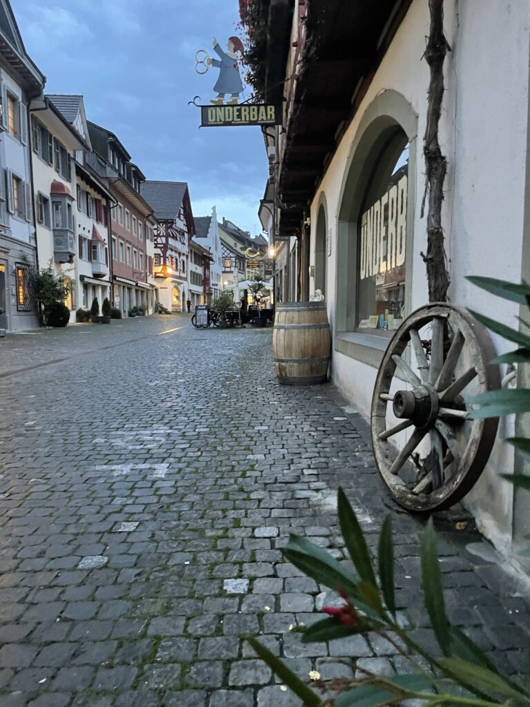 Ziel: Altstadt Stein am Rhein in der Schweiz. Natürlich war das nun eher ein Programmpunkt für uns Erwachsene, aber die Kids haben super mitgemacht, und es war wunderschön. Mittelalterliche Häuser reihen sich aneinander – und zack war Nadja nur noch mit 20 % ihres Kopfes in der Realität. Die restlichen 80 % stellten sich vor, wie es im Wandel der Zeit wohl ausgesehen haben musste: Welche Dramen, alltäglichen Situationen, Freude und Leid durch die Straßen gewandelt sind. Ich tauchte in die Bücherecke meines Kopfes ab und sah Assassinen zu wie sie über die Dächer springen, sah Drachen sich über den Dächern erheben, weite Röcke über das Kopfsteinpflaster wehen, sah Märkte mit Kunsthandwerk und Lebensmittelstände, sah kleine Tavernen und Pferde davor. Hörte altertümliche Musik und Hufgeklapper. Kurz gesagt: Ich war total in meiner Welt – und begeistert von der Altstadt. Ein Besuch dieser Stadt lohnt sich definitiv, auch ohne sprühende Fantasy. 😉